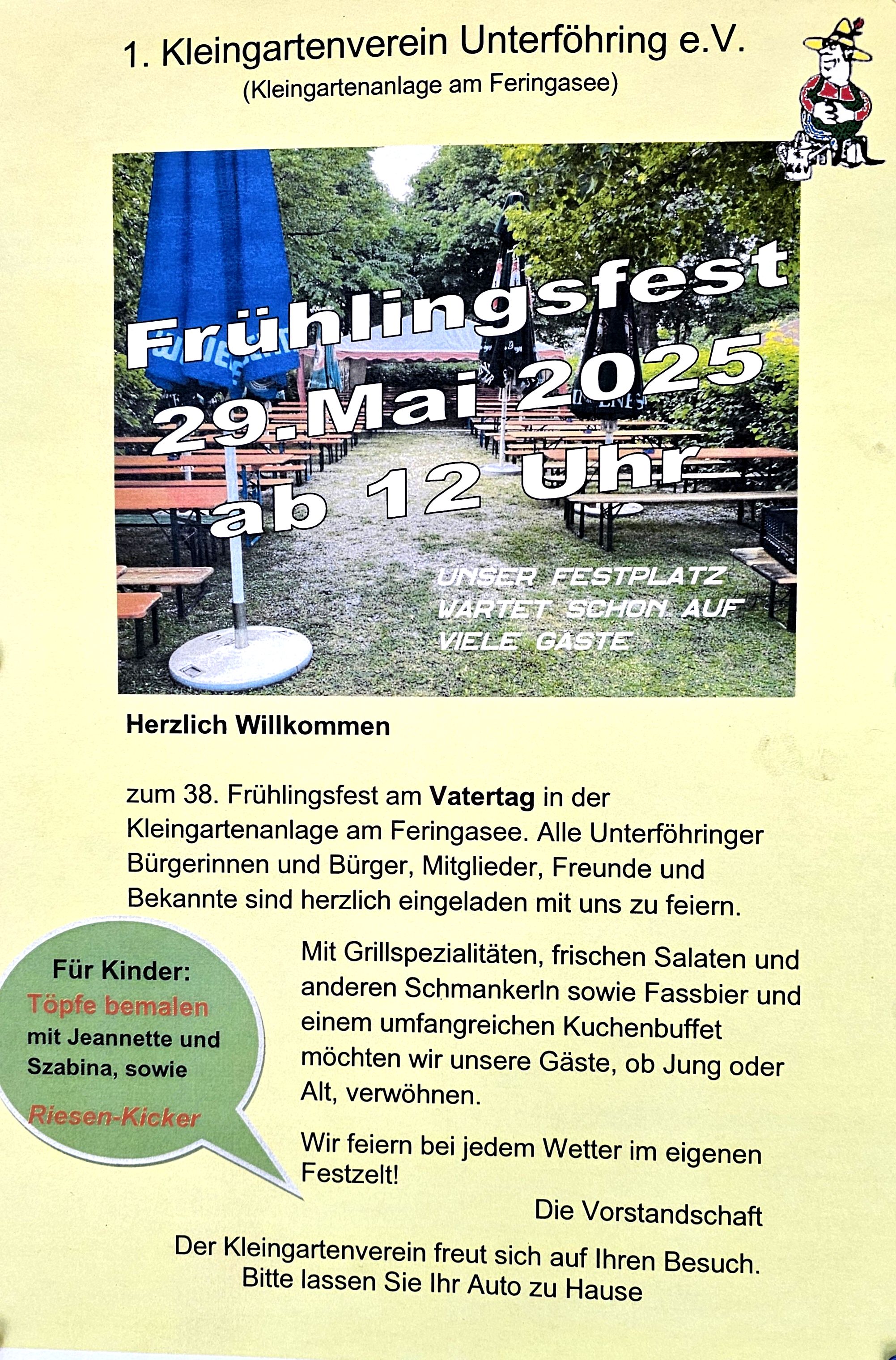 das Bürgerfest in Unterföhring steht vor der Tür. Morgen - am Freitag den 27 Juni 2025, startet das Fest mit dem traditionellen Einzug der Vereine, und auch wir, der 1. Kleingartenverein Unterföhring e.V. , sind wieder mit dabei.