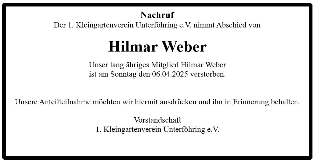 Aus diesem Grund kann die angesetzte Jahreshauptversammlung unseres 1. Kleingartenvereins Unterföhring am 10.06.2021 dort nicht statt finden.